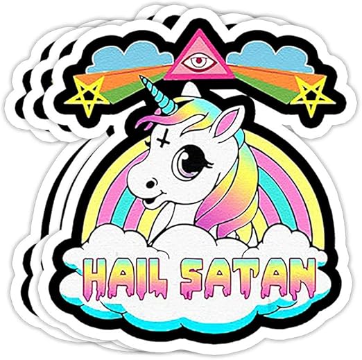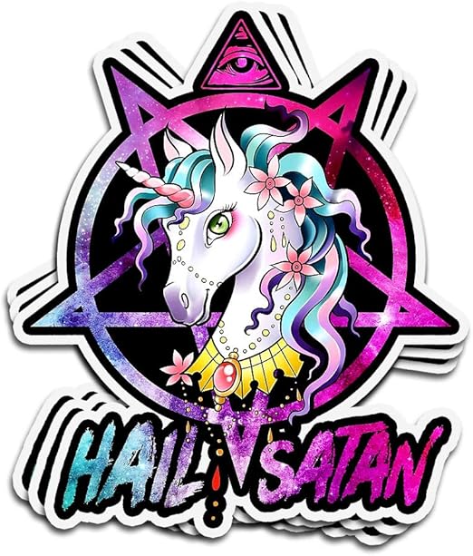 Amazon Com 3 Pcs Stickers Unicorn Hail Satan Death Metal Rainbow