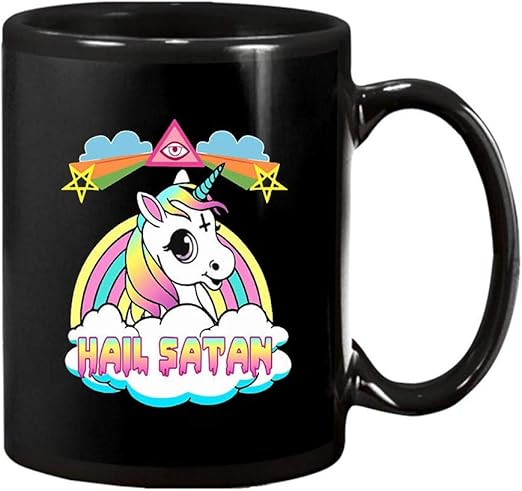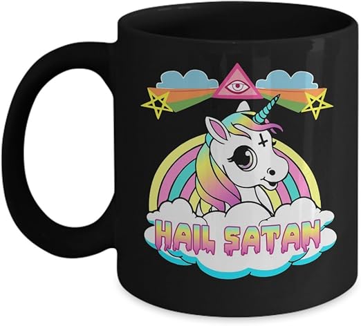 Amazon Com Unicorn Hail Satan Death Metal Rainbown Coffee Mugs