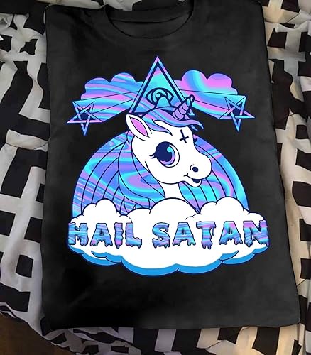 Hail Satan Unicorn Tshirt Funny Tee Rainbow Death Metal T