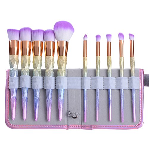 Qitao 10pcs Unicorn Rainbow Diamond Handle Soft Synthetic Hair