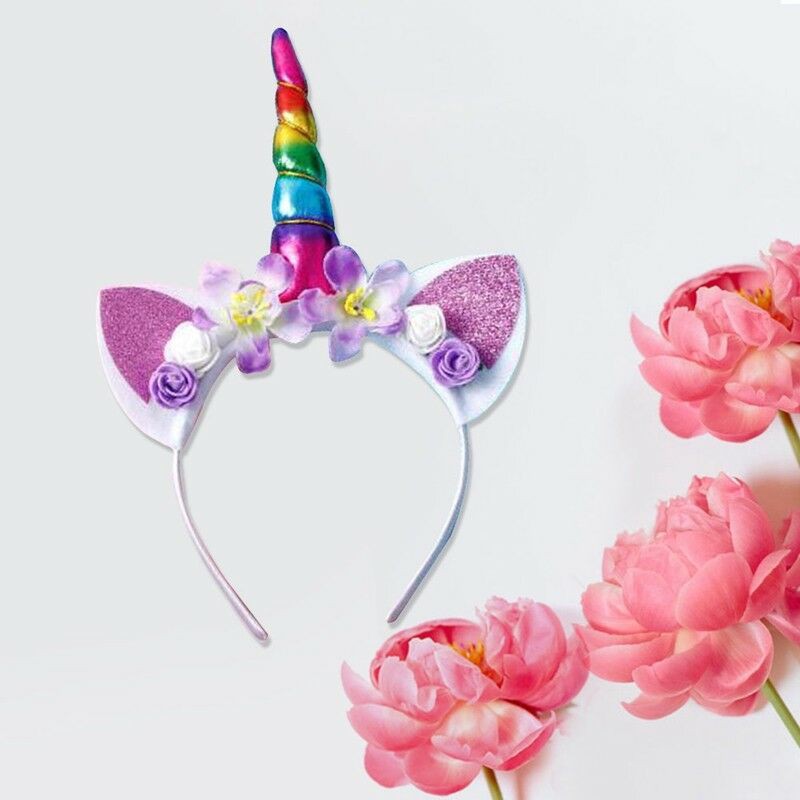 1pc Party Unicorn Hairband Tiara Diy Flower Unicorn Horn Ears Hair