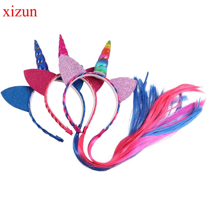 Ponytail Unicorn Headbands Glitter Ears Kids Girls Princess Braid