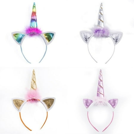 Lurrose 4pcs Glitter Unicorn Hair Bands Cute Adorable Hair Hoop