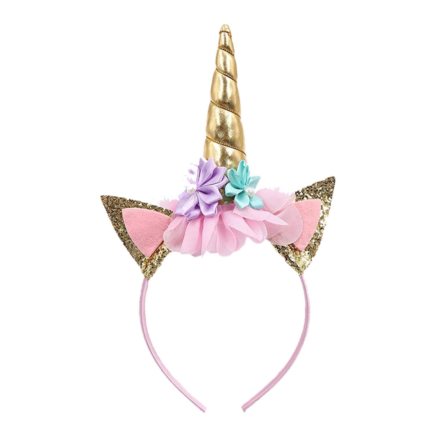 New 2018 Birthday Party Unicorn Headband Sequin Gold Bow Girls