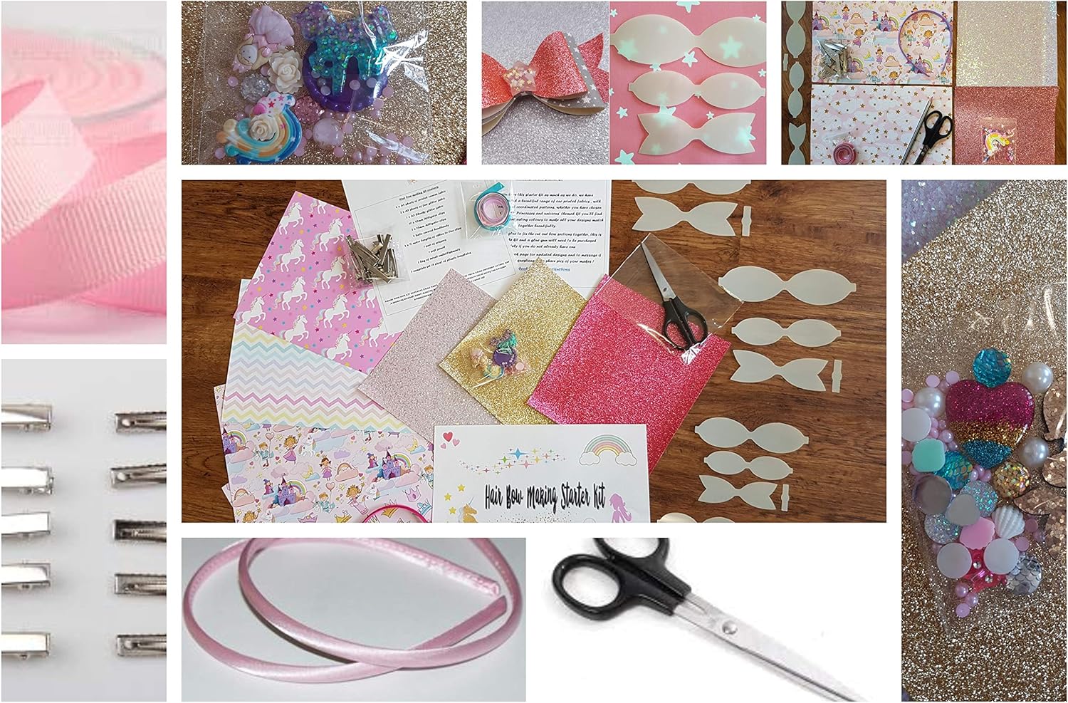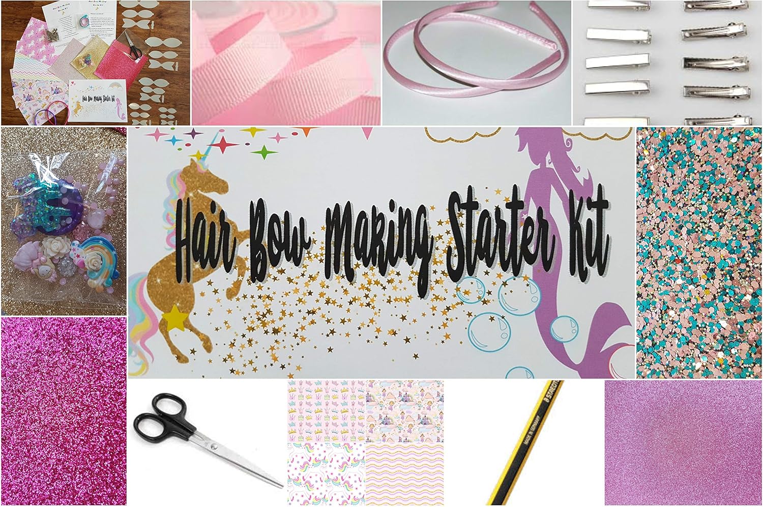 Hair Bow Making Starter Kit Fabrics Embellishments Glitter Sheets