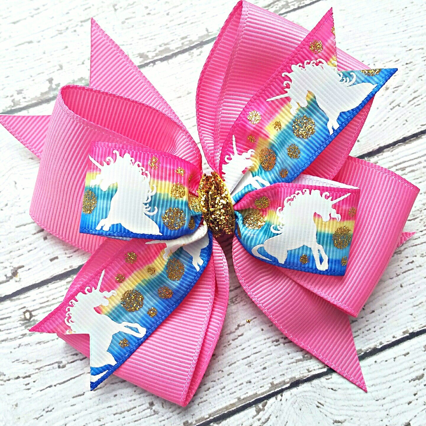 Amazon Com Pink And Gold Rainbow Unicorn Hair Bow 4 Inch Layered