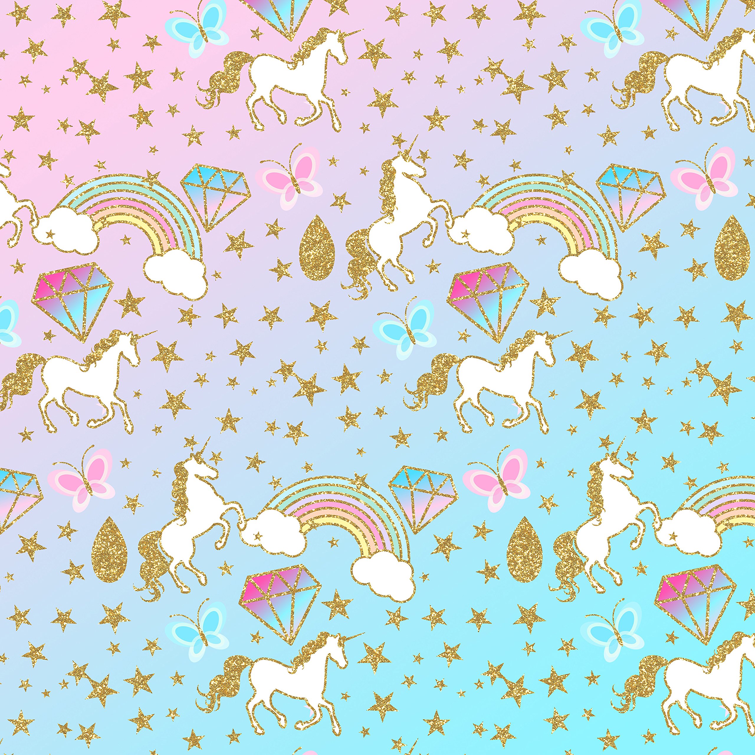 Pastel Glitter Unicorns Printed Canvas Fabric Sheet X 1 For Hair