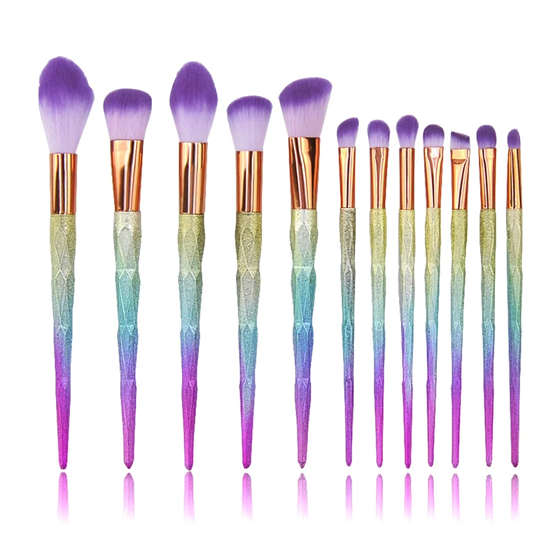 12 Pcs Unicorn Makeup Brushes Glitter Brochas Diamond Bentuk