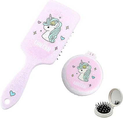 Unicorn Hair Brush Fold Hairbrush With Makeup Mirror 2 Pcs Ideal