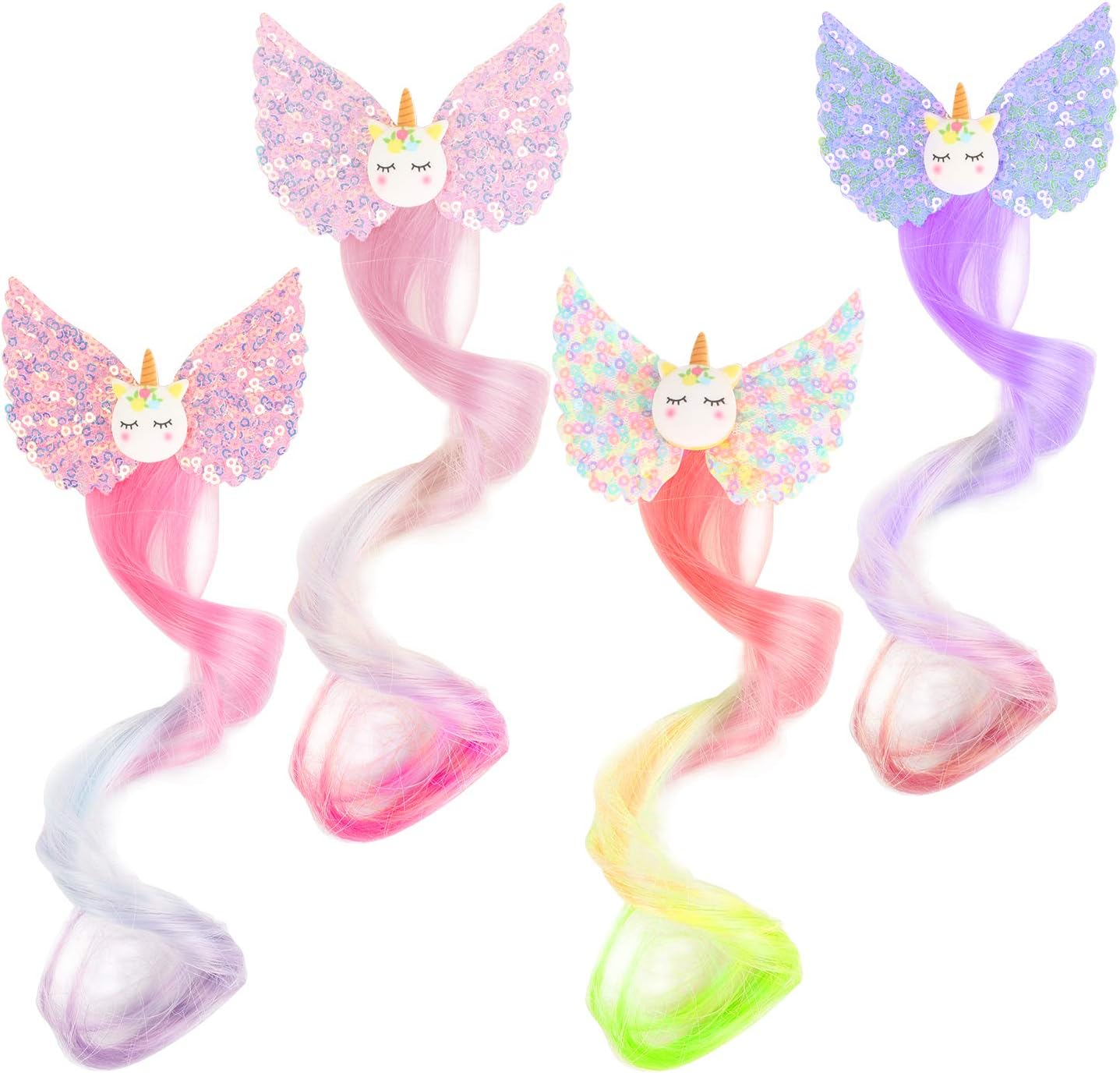 Airsmall 4pcs Unicorn Hair Clips Gradient Hair Extension Clip