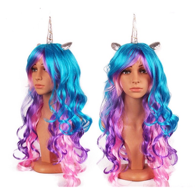 Expression Gifts Unicorn Wig 3 Color Wig With Unicorn Horn And