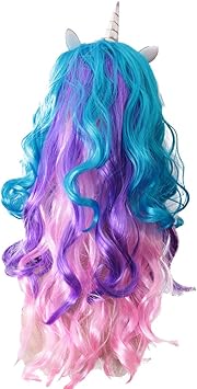 Amazon Com Unicorn Rainbow Wig Long Curly Hair Unicorn Cosplay