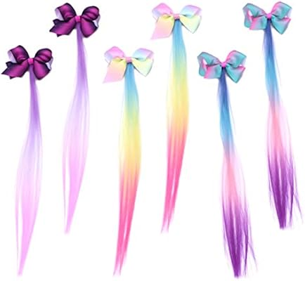 Lurrose 6pcs Bow Hair Clip Gradient Color Hair Extensions Hair
