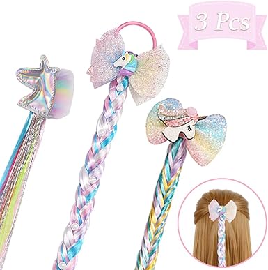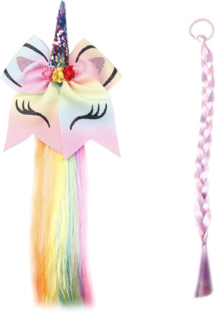 Amazon Com Unicorn Glitter Hair Bows Princess Dress Up Braided