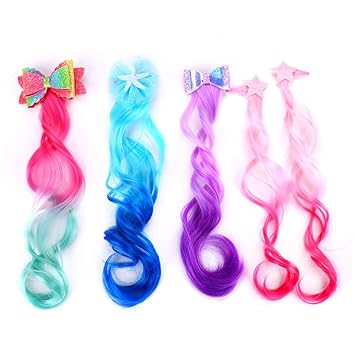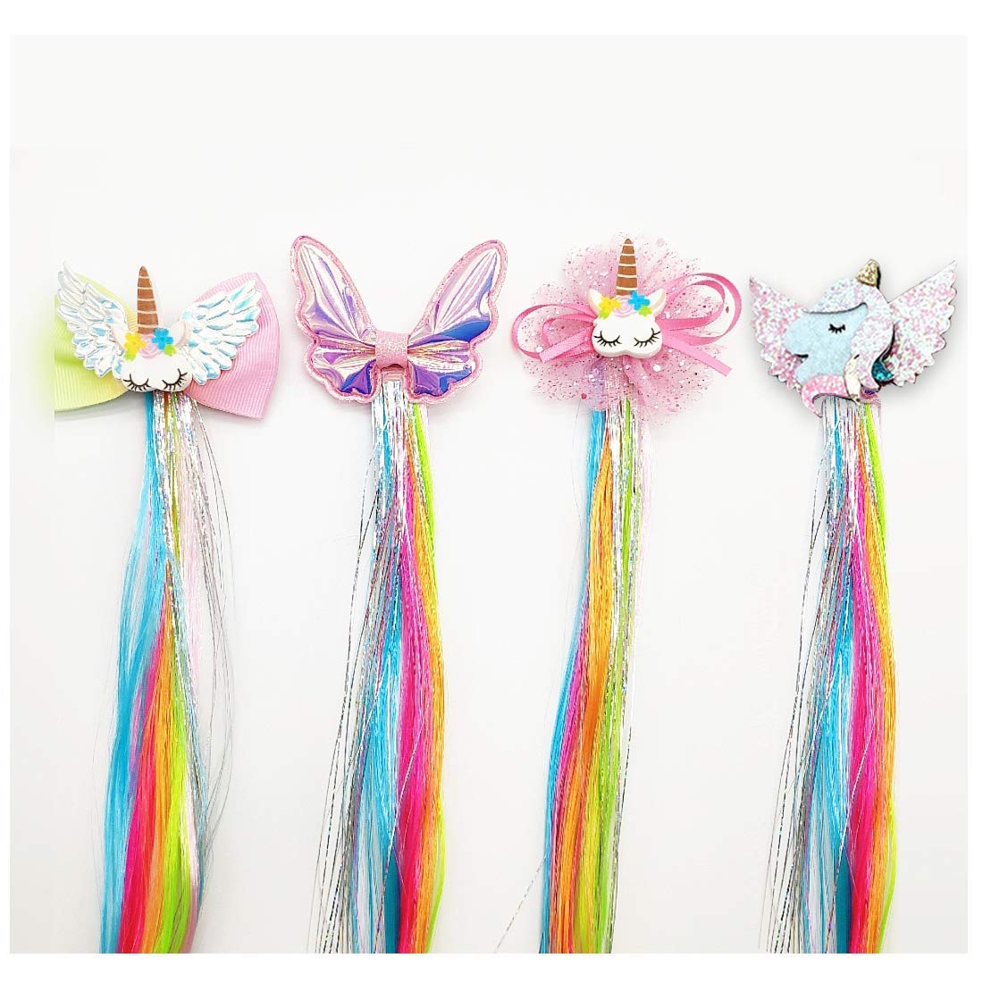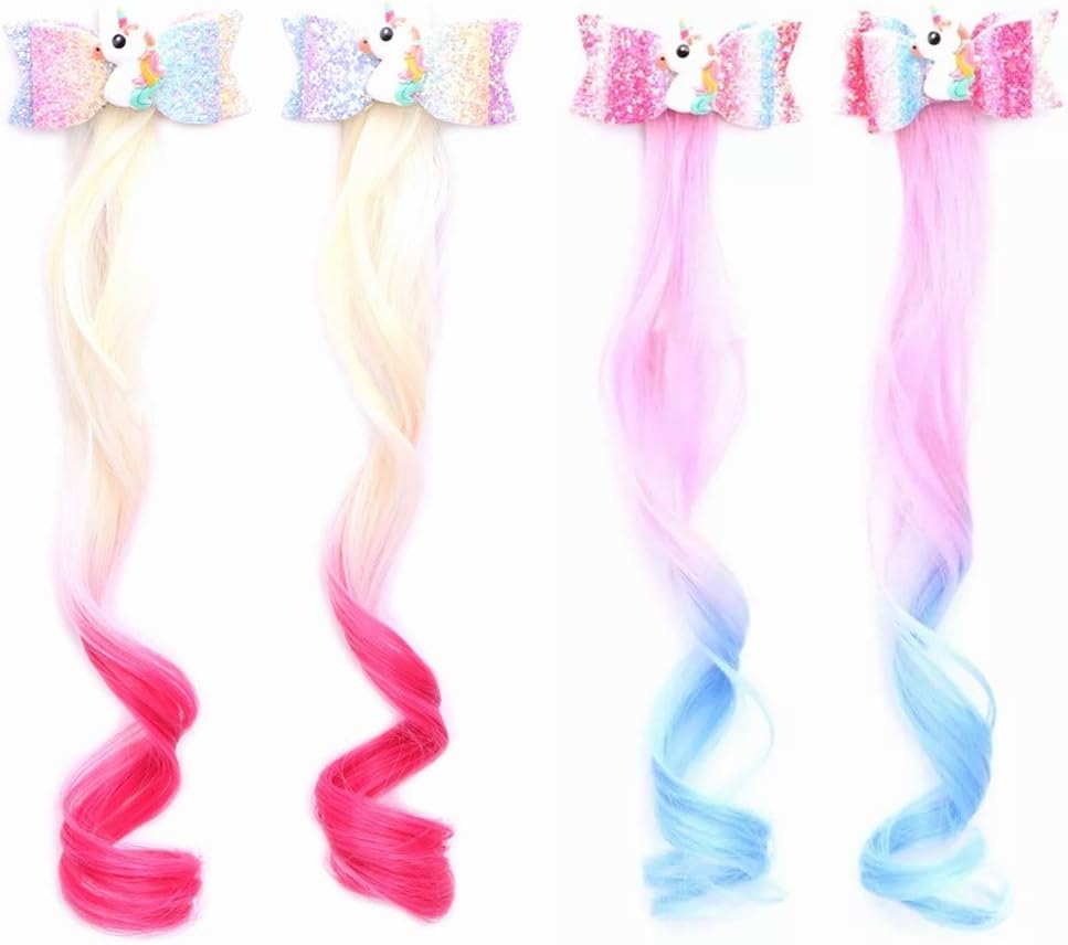 Airsmall 4pcs Unicorn Hair Clips Gradient Hair Extension Clip