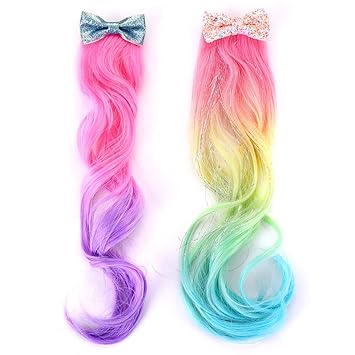 Amazon Com Rainbow Pastel Unicorn Fake Hair Barrettes Ombre