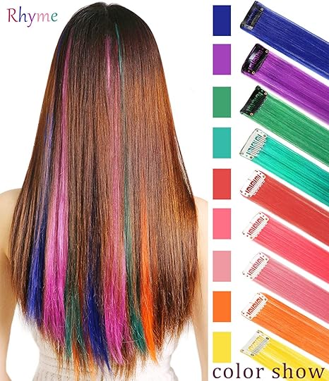 Amazon Com 10 Inch Rainbow Clip In Real Human Hair Extensions Set