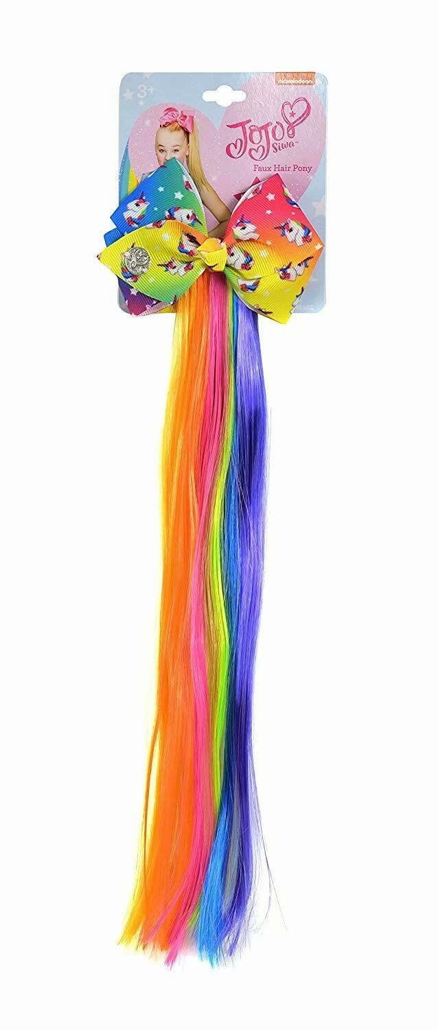 Jojo Siwa Small Bow With Faux Hair Extensions Clip In Colorful Ponytail Rainbow Unicorn Walmart Com Walmart Com