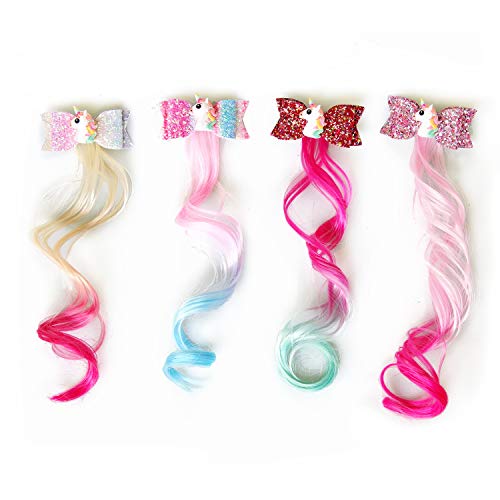 Unicorn Hair Bows With Coloured Hair Extension With Clips Long