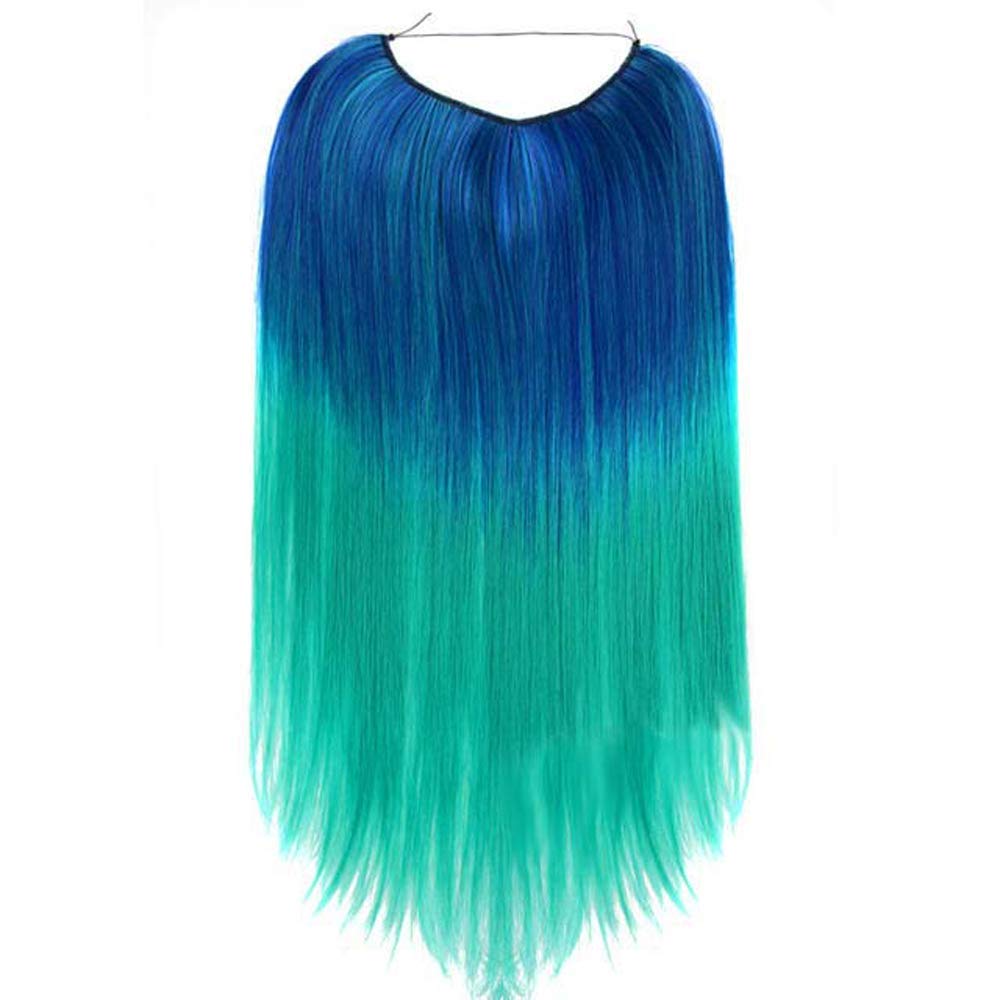 Neptune Teal Aqua Curly Ombre Flip In Halo Unicorn Hair Extensions