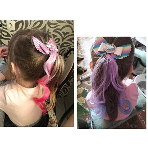 Hellomagic 5 Pieces Unicorn Hair Clips Hair Bows Glitter Hair