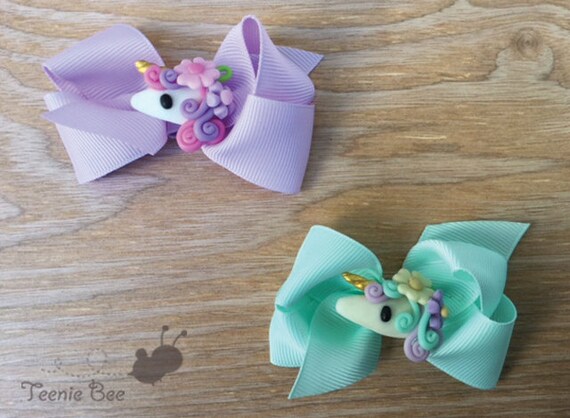 Kawaii Unicorn Hair Bow Cute Green Unicorn Hair Bow Clip Etsy