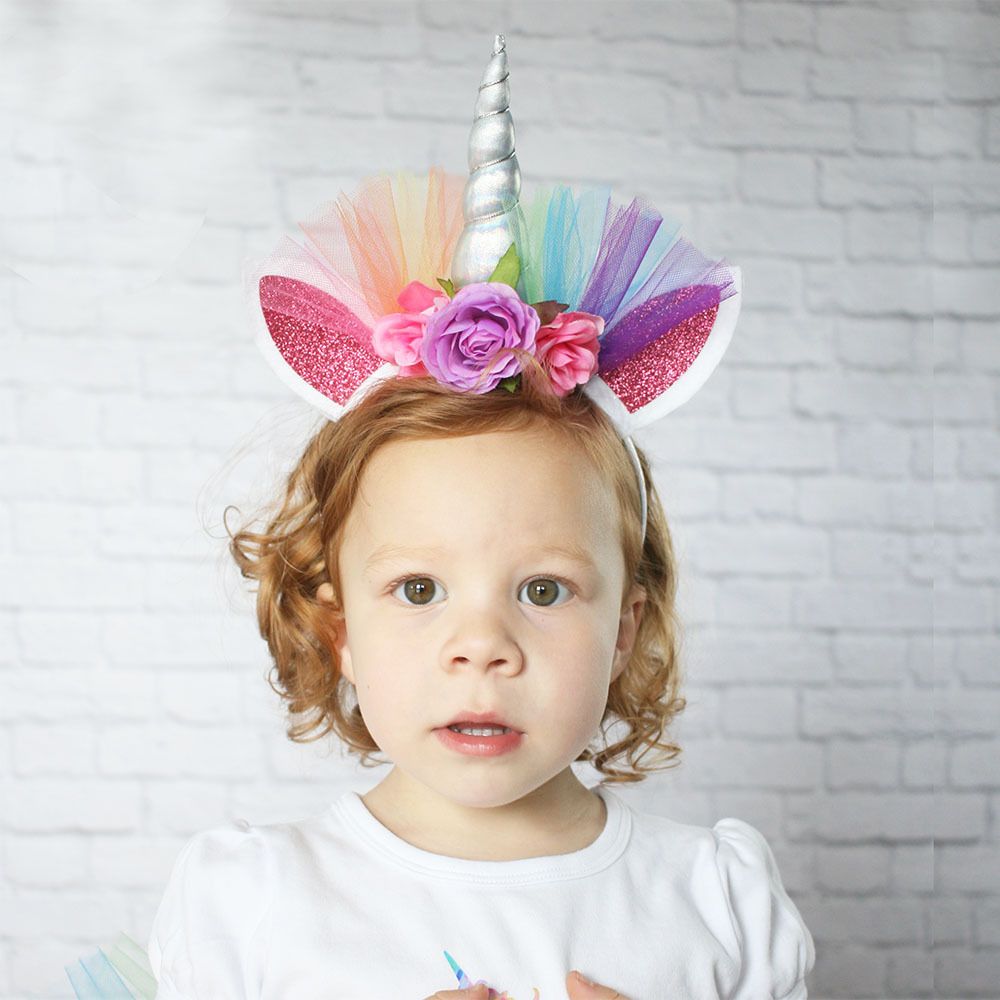 Unicorn Hair Sticks Girl Colorful Flowers With Shinny Ear Mesh