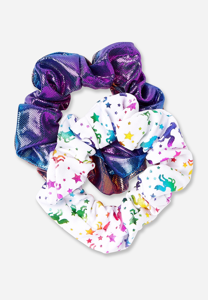 Rainbow Unicorn Shimmer Girls Scrunchie 2 Pack Justice