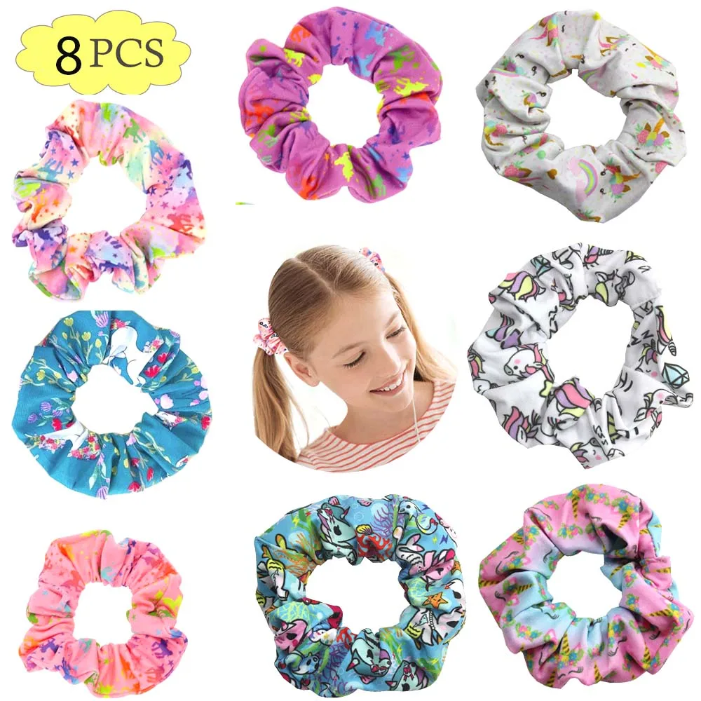 Free Shipping 8pcs Pack Fun Scrunchies Inspired Unicorn Girl Made