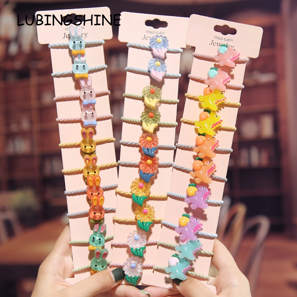 10pcs Korea Girls Kids Resin Animal Flower Unicorn Hair Ties