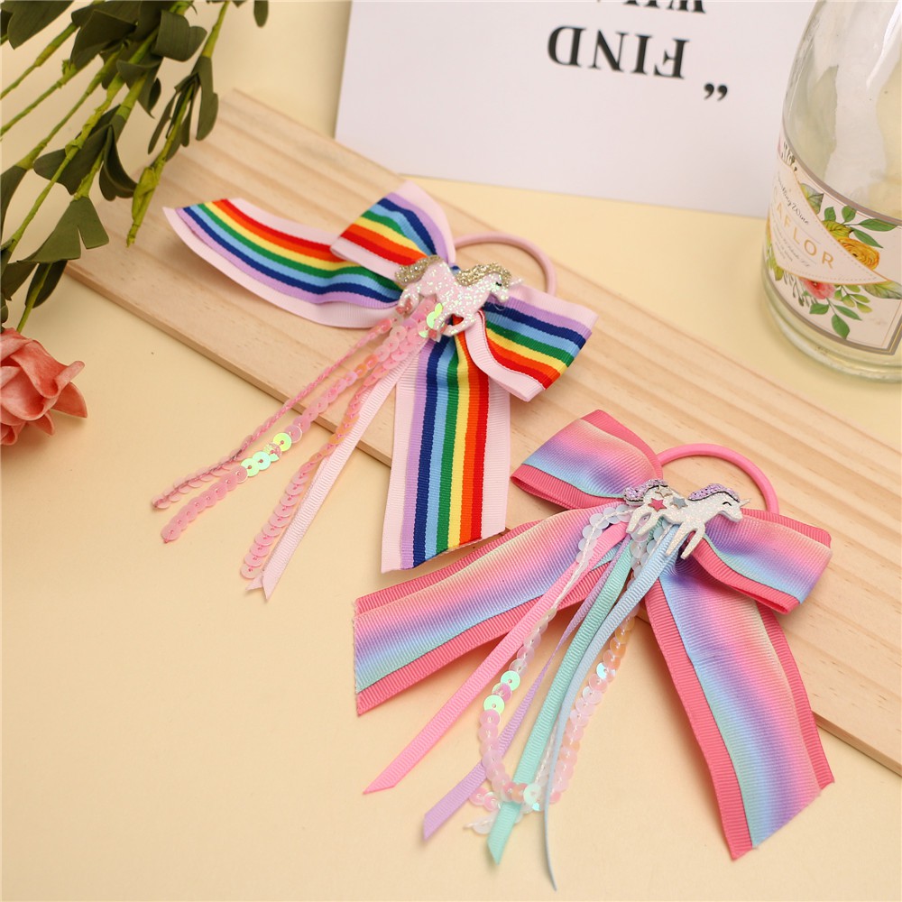 Unicorn Hair Scrunchies Fabric Bow Elastic Band Ponytail Dress