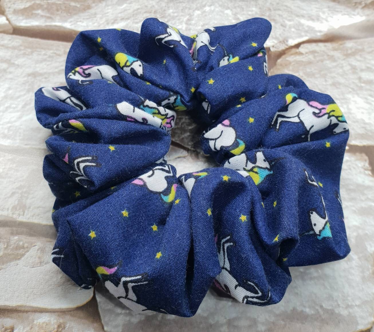 Unicorn Hair Scrunchie Scrunchies In Navy Blue Fabric Hair Etsy