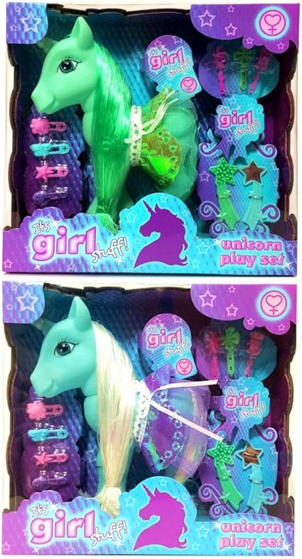 Amazon Com 2 Unicorn Play Sets 1 Blue And 1 Aqua Toys Games