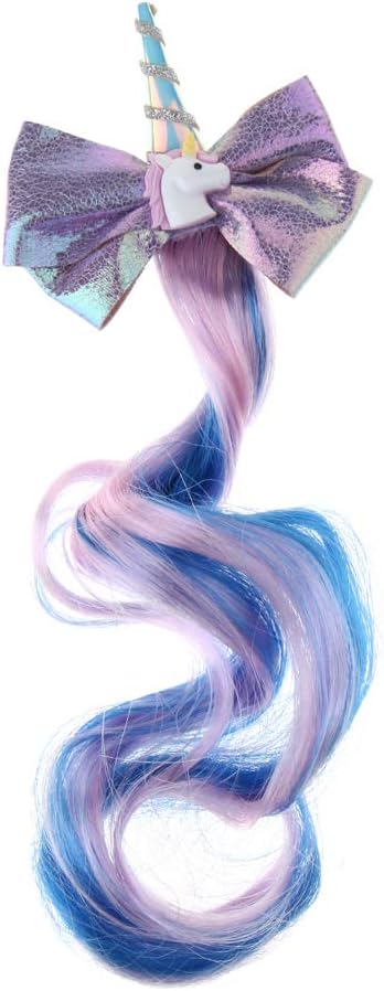 Girls Cute Unicorn Hair Bow Clip Rainbow Extensions Wig Pony