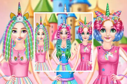 Rainbow Hair Salon Dress Up Unicorn Hairstyle Makeup Dressup