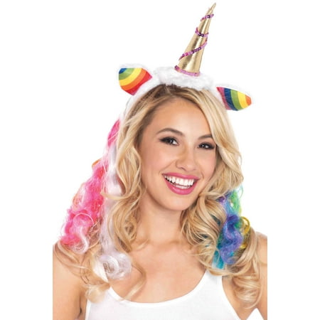 Upc 714718462400 Gold Unicorn Horn Headband With Rainbow Wig