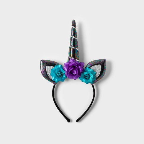 Black Unicorn Headband Sparkle Flowers Dark Halloween Costume