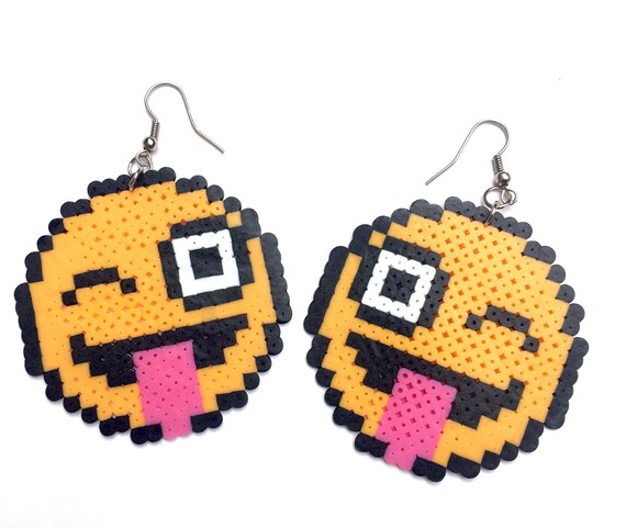 Emoji Earrings Face Earrings Perler Bead Earrings Wink Etsy