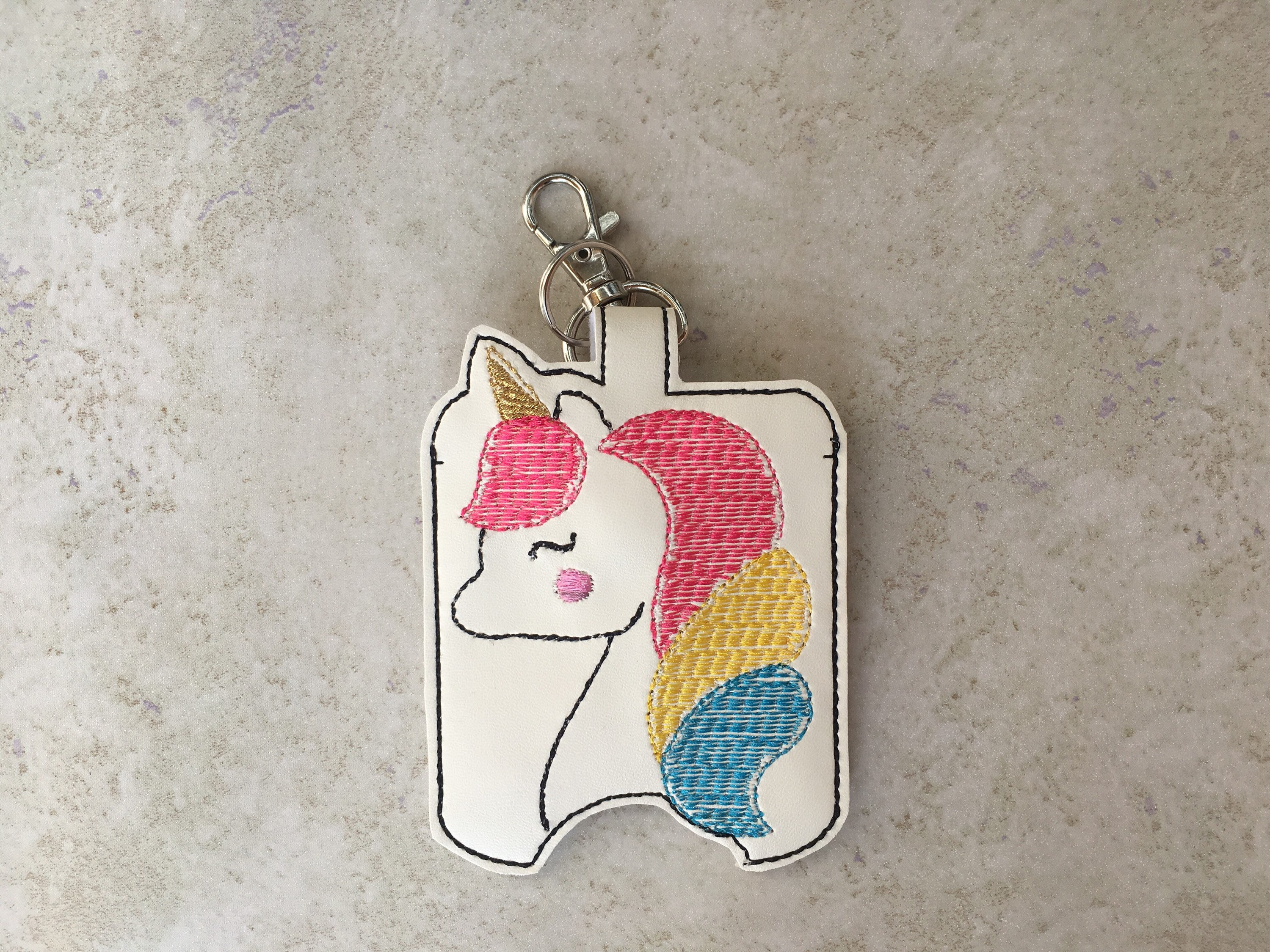 Unicorn Spit Hand Sanitizer Holder Key Chain Machine Embroidery Design