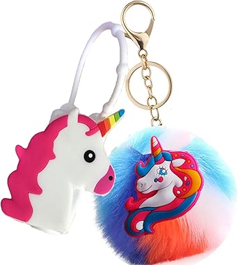 Unicorn Pom Pom Fluffy Ball Pompom Hand Sanitizer Holder Keychain