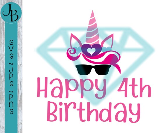Unicorn Happy 4th Birthday Svg Cut File 0388 Etsy