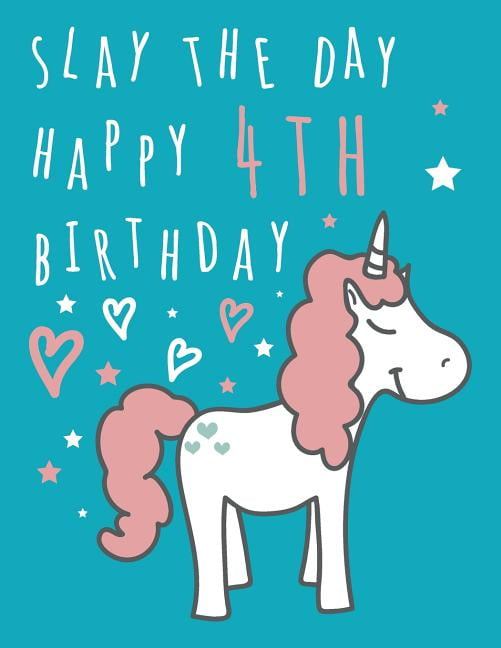 Slay The Day Happy 4th Birthday Blank Line Unicorn Birthday