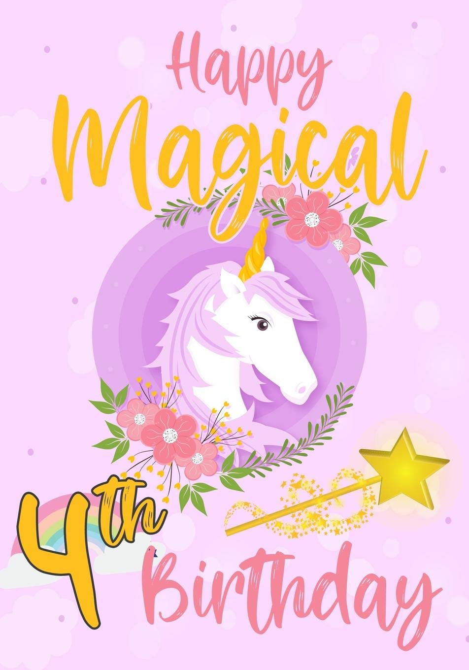 Unicorn Magical Wishes 4th Birthday Card Happy 4th Birthday