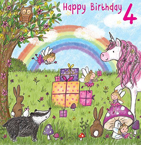 Twizler 4th Birthday Card For Girl With Magical Unicorn Fairies