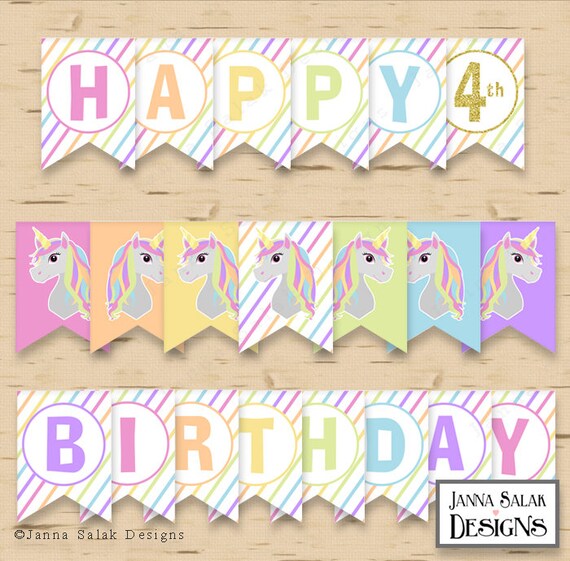 Unicorn Birthday Banner Pastel Rainbow Unicorn Banner Gold