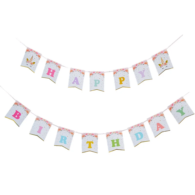 Party Unicorn Happy Birthday Banner Unicorn Angel Flower Theme