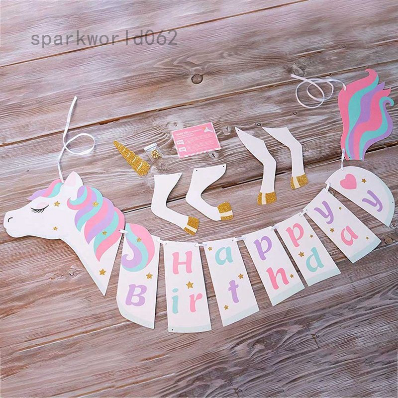 Glitter Unicorn Garland Happy Birthday Banner Bunting Baby