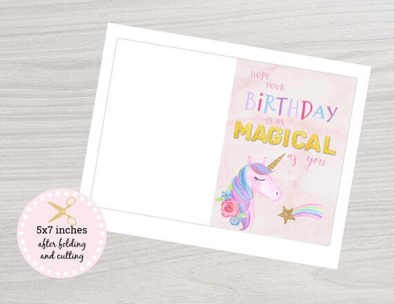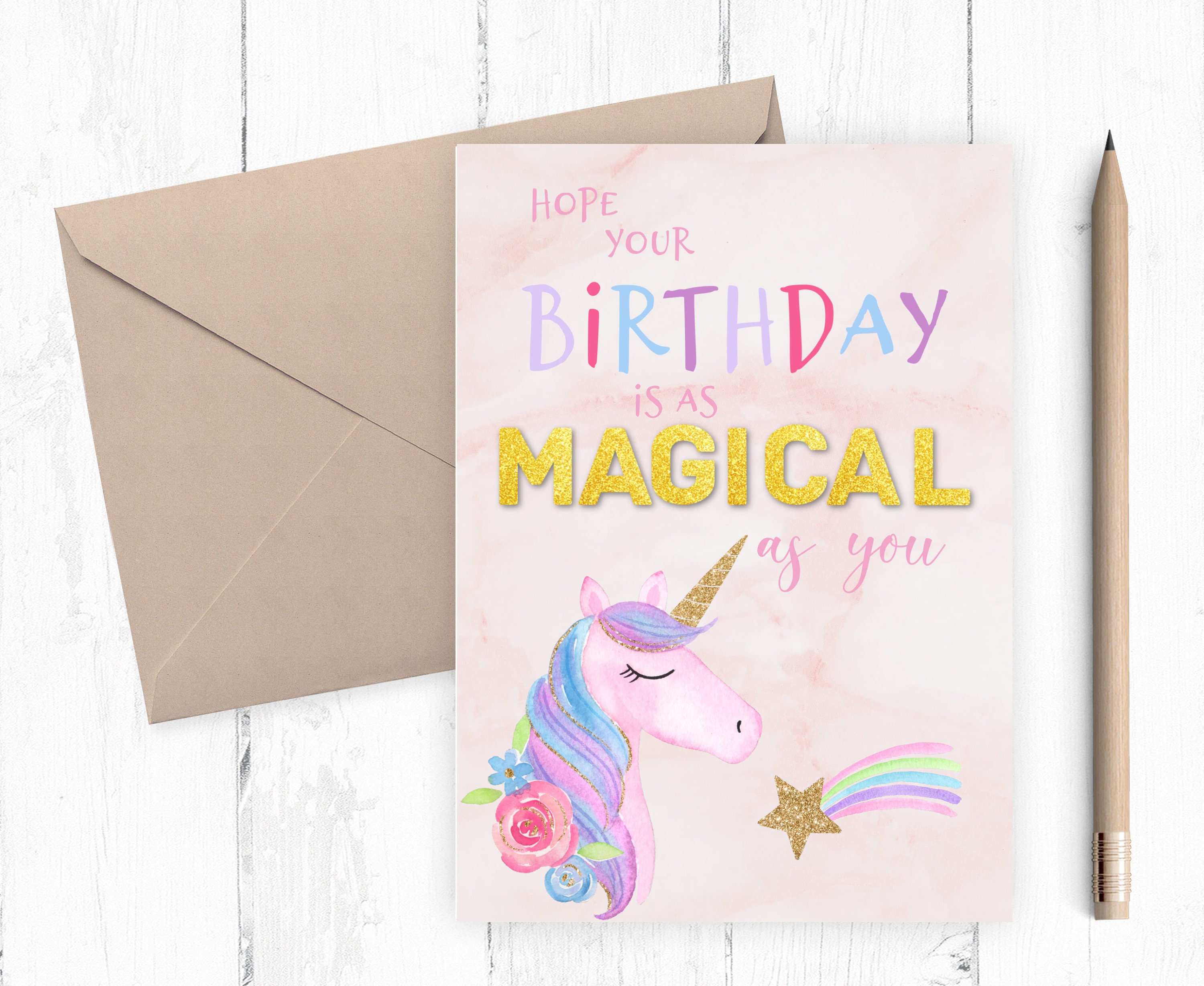 Unicorn Happy Birthday Card For Kids Printable Birthday Card Etsy
