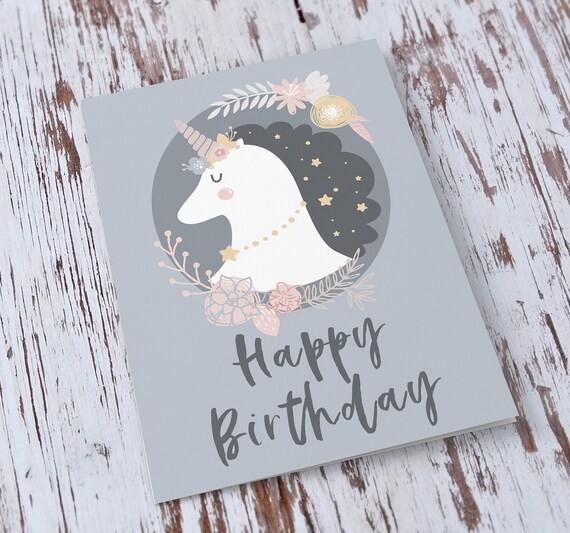 Printable Birthday Card Unicorn Happy Birthday Instant Etsy