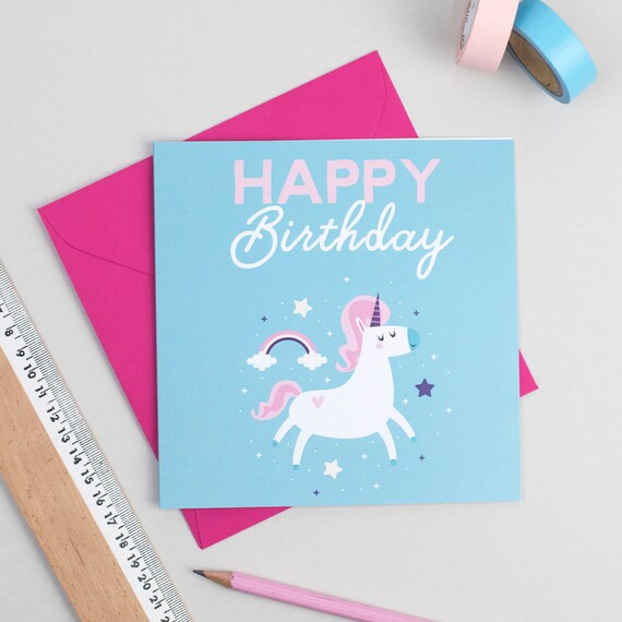 Unicorn Birthday Card Birthday Greeting Card Featuring A Cute Etsy